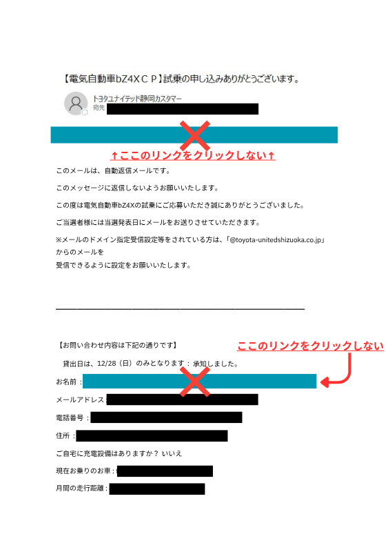 2025-11-21 【注意】bZ4X試乗モニターキャンペーン専用フォームに関する不正なメールに関して