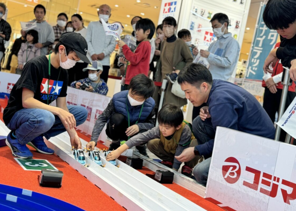 本イベントは、自動車ディーラーである「トヨタユナイテッド静岡」と、ミニ四駆の聖地と言われる、「コジマ×ビックカメラ静岡店」による共同イベントです。