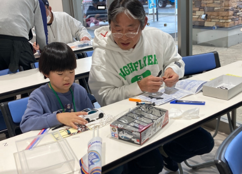 「初めてのミニ四駆作成がとても楽しそうでした。