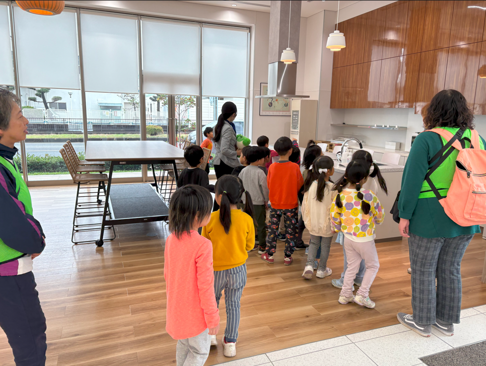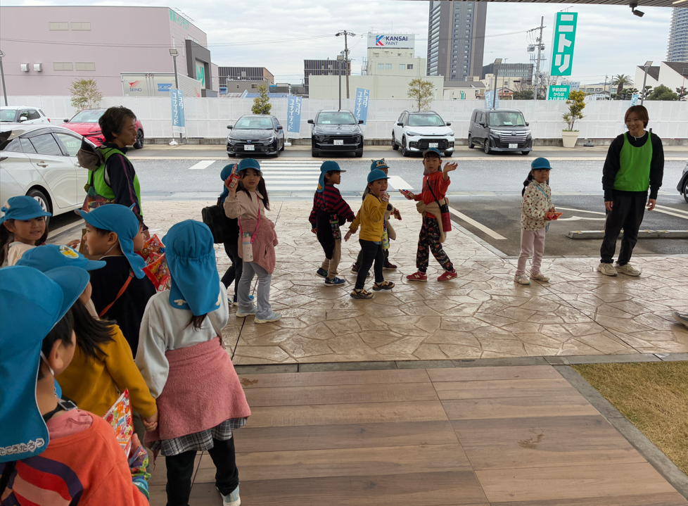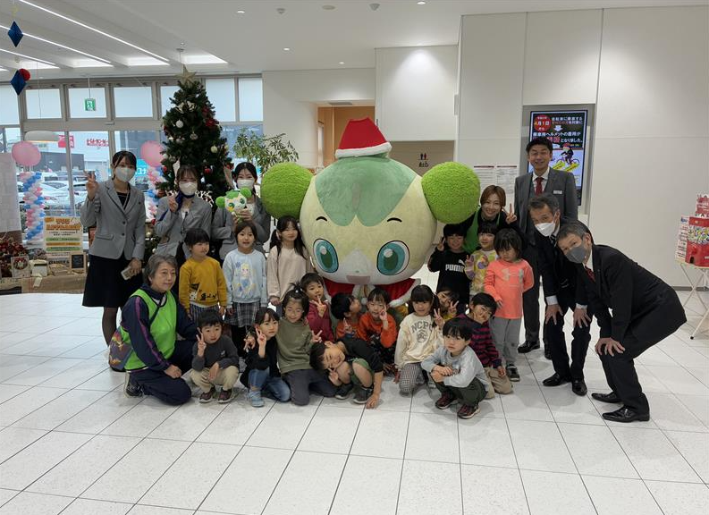 クリスマスの12月25日、トヨタユナイテッド静岡が支援している減災教育に参加された有度北こども園の園児17名と引率の先生4名が当社草薙店に遊びに来てくれました。
